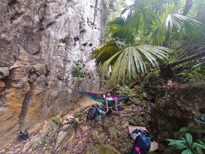 Around 4pm it lightly drizzled adding a light blanket of moisture to the crag but left the majority of the wall untouched. Due to the recent Typhoon Odette, it apparently swept away a lot of mud from the rocks across the wall which gave way for us to lay, sit and rest on the stones. Even put up a hammock!