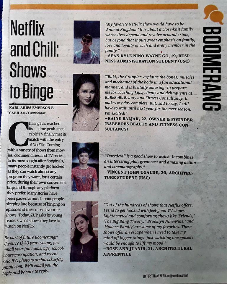 - Sun.Star Cebu – “Life ‘Em, Love ‘Em” by Monica Lopez on 2016, April 1